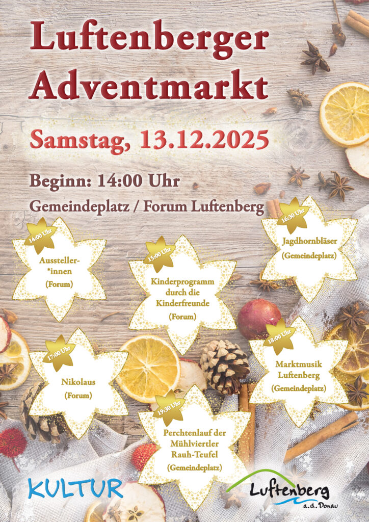 Zum 2.Mal, heuer wieder am Adventmarkt im Forum Luftenberg, 13.Dezember ab 14 Uhr! Kosten, plaudern und Mitnehmen… ;-)